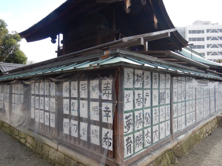 また、1月2日に当社で行いました、一文字書き初めも展示しております。