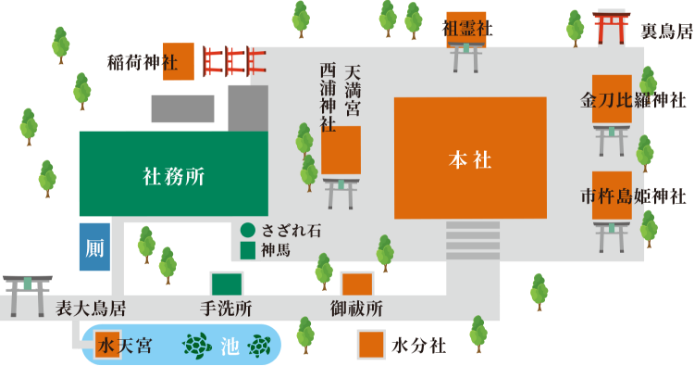裏鬼門、未申(坤)の方除けの神として祀られた。
